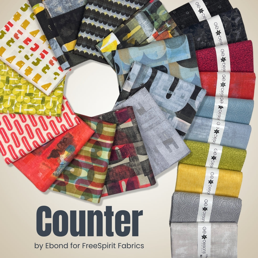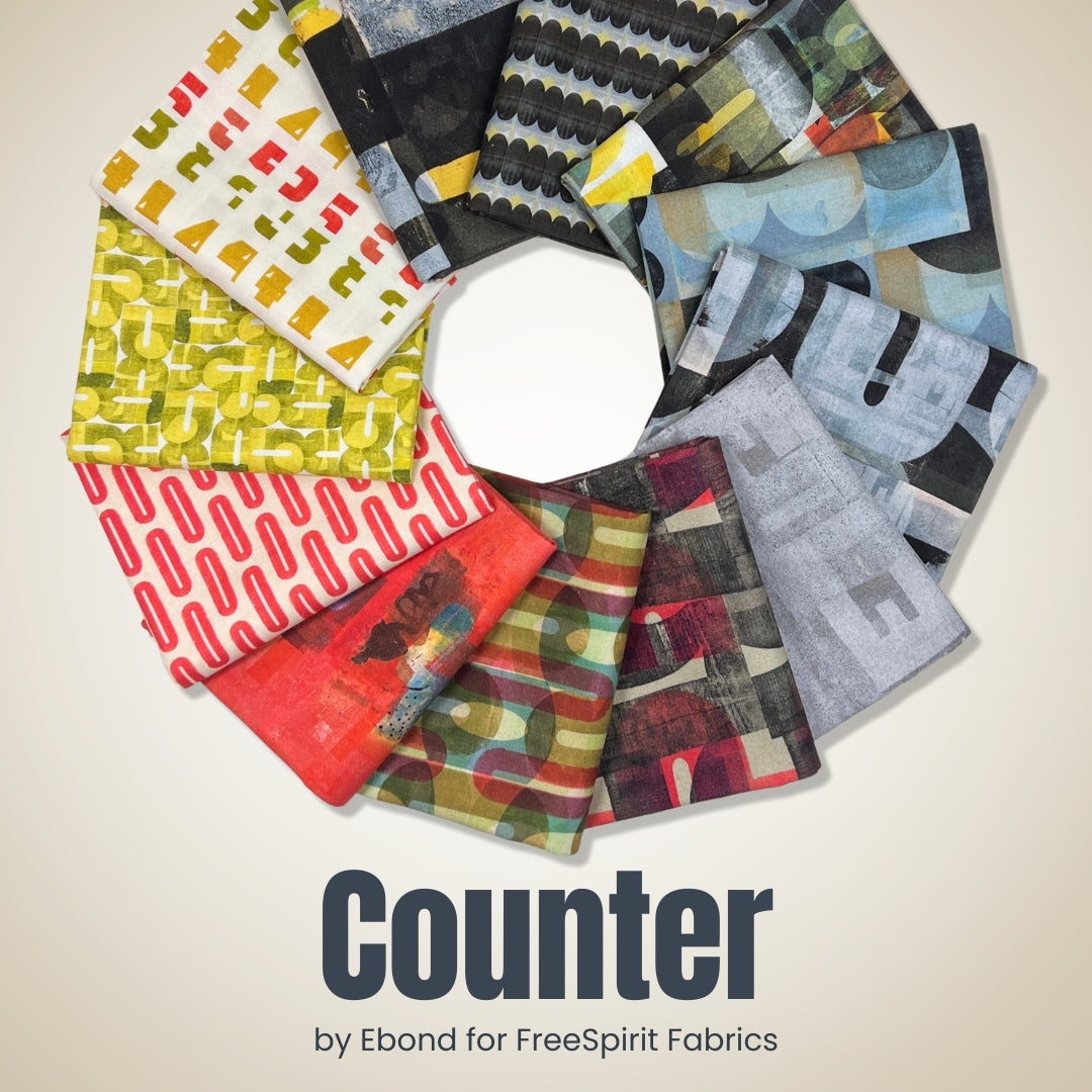 Bold, graphic, and effortlessly modern, Counter by eBond is a striking collection that plays with repetition, texture, and rhythm. This 12 piece half yard bundle features a curated mix of prints that blend painterly marks, layered shapes, and subtle grunge textures in a sophisticated palette of earthy neutrals, muted brights, and inky contrasts.