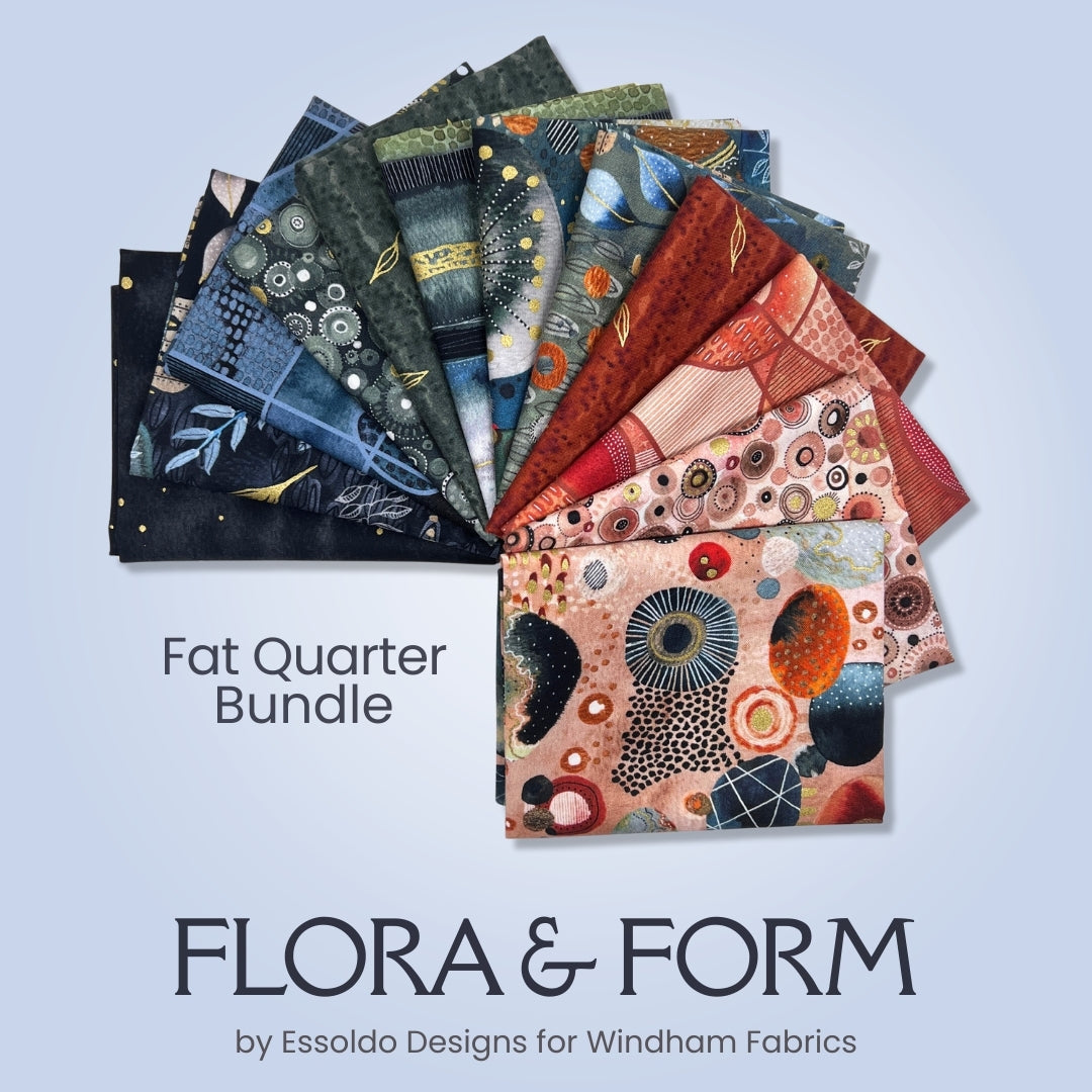 Artful, expressive, and richly layered, Flora and Form by Essoldo Designs for Windham Fabrics is a stunning fusion of nature and abstract design. This 12-piece fat quarter bundle blends organic florals with modern geometrics, creating a collection that feels both earthy and contemporary.