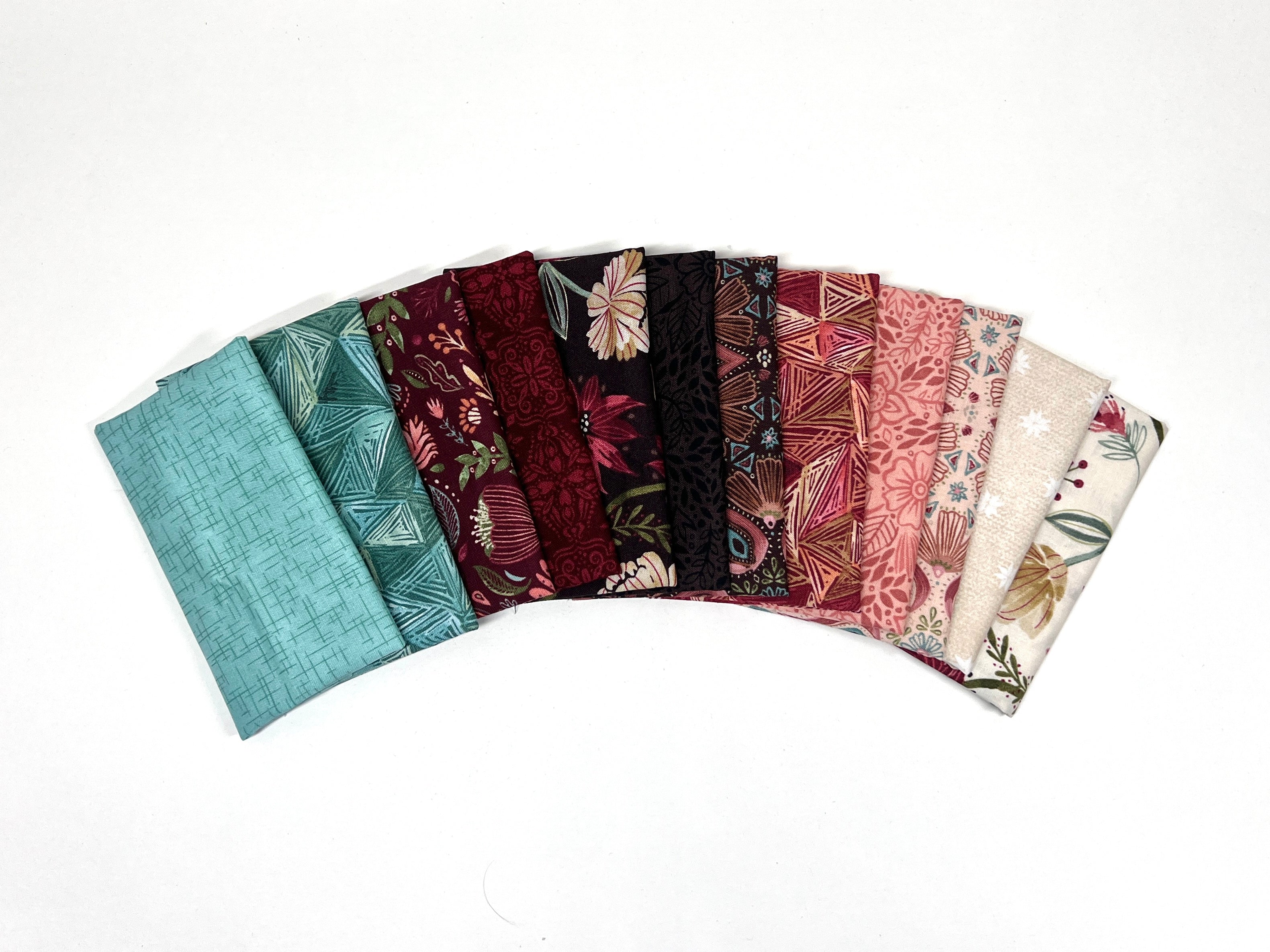 The Floralscape Lil' Bundle includes 12- 6"x21" cuts of fabric from the Floralscape collection by Dina June for Wilmington Prints to create any GE Designs Lil' Table Runner. The lil bundle does not include fabric for 1/4 yard of binding.