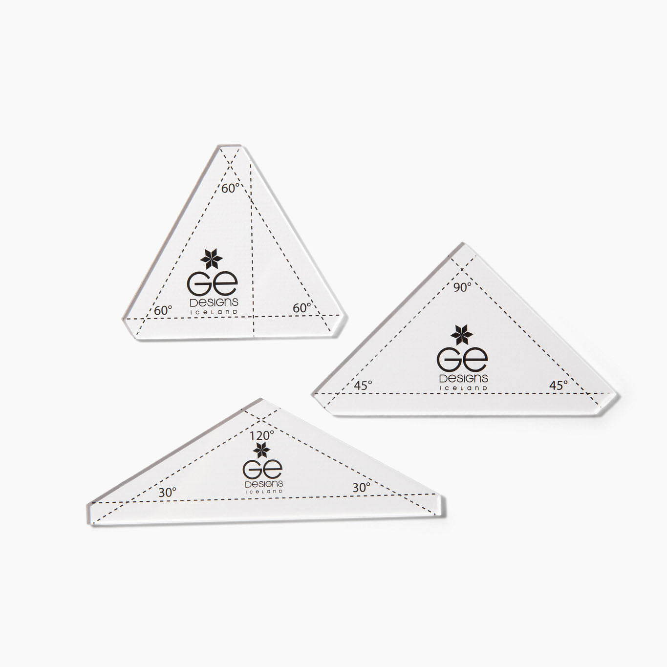 Pack includes 3 sizes: 60 degree, left and right 45 degree, left and right 30 degree corners.