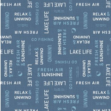 Lake Retreat Denim Word Toss from the Lake Retreat collection by PDR, LLC for Wilmington Prints.