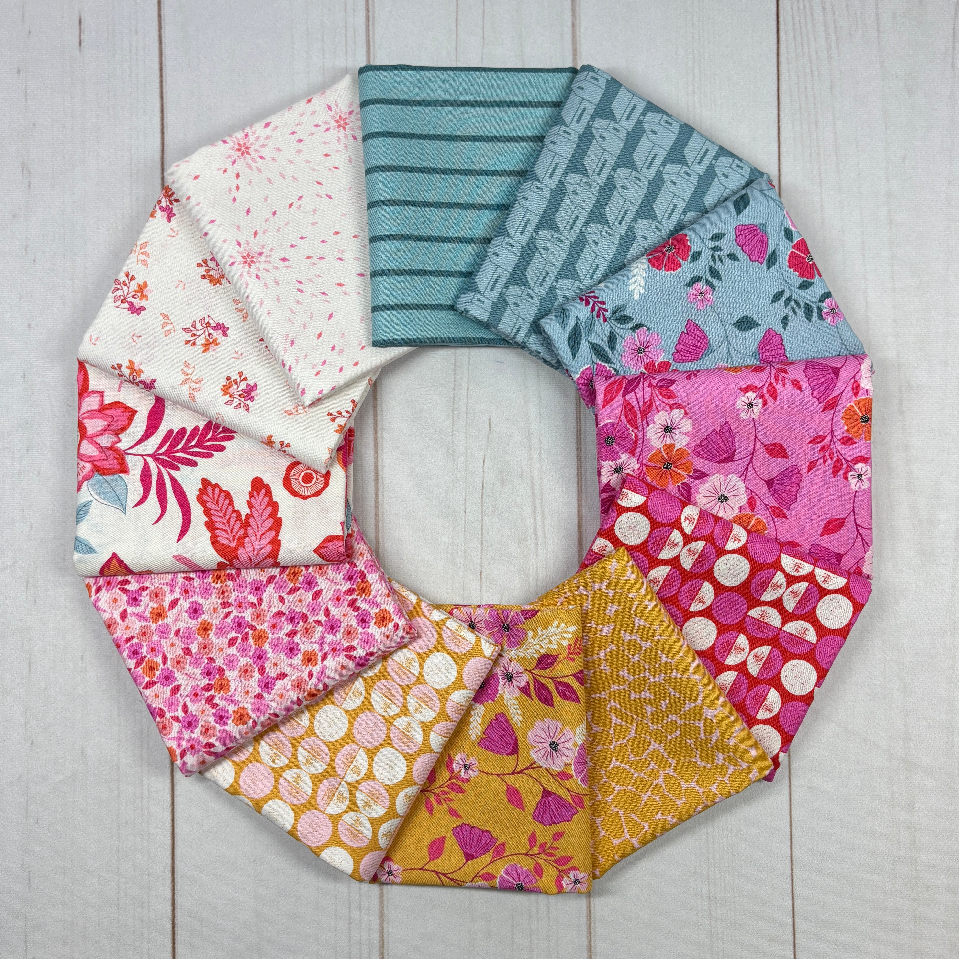 Elevate your quilting and sewing projects with this stunning 12-piece half yard bundle designed by Stephanie Organes for Andover Fabrics. This thoughtfully curated collection showcases a perfect balance of playful florals, modern geometrics, and textured blenders, all in a beautifully cohesive palette.