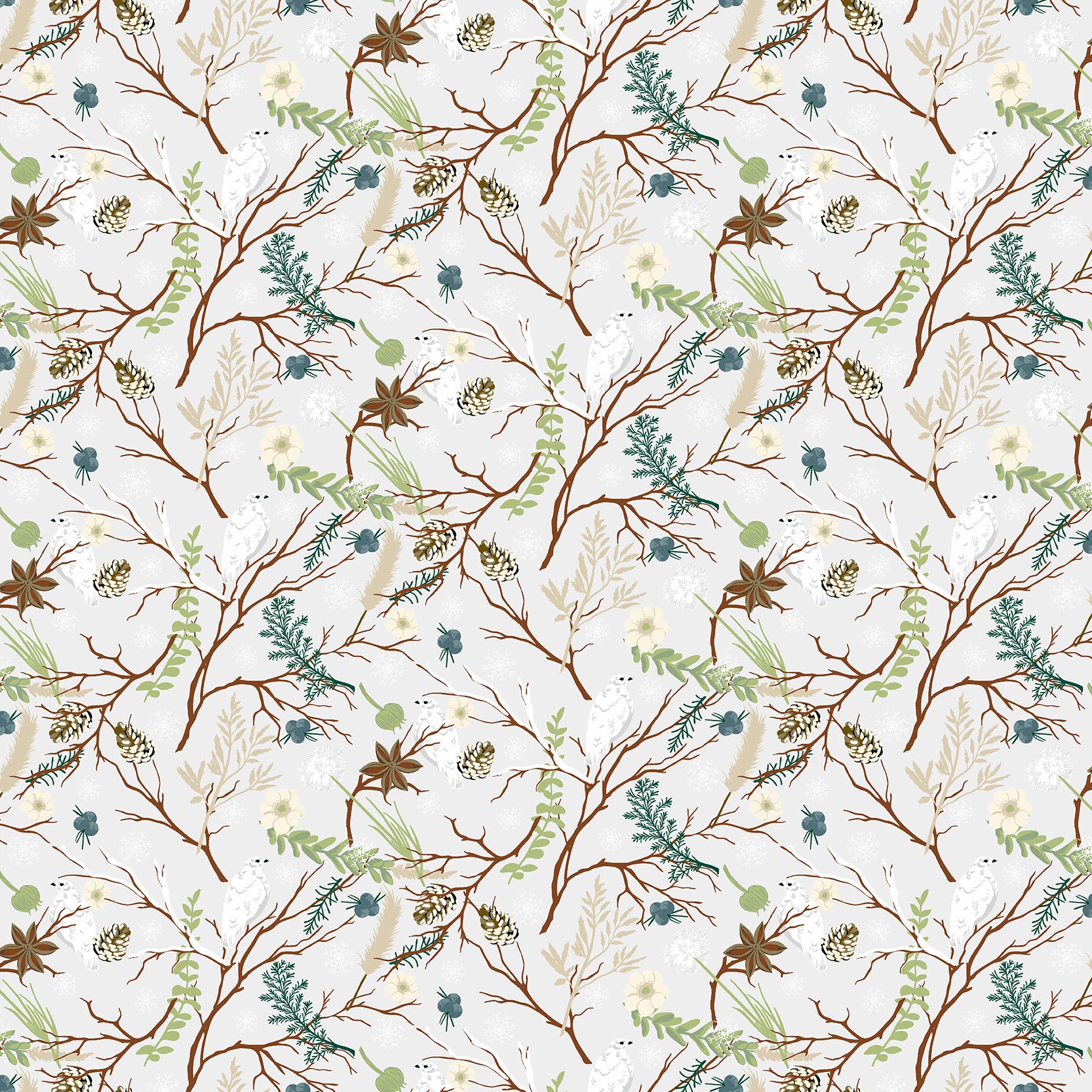 A THREE yard cut of 108" wide Nordic Solstice Birch Grove Chalk from the Nordic Solstice collection by Gudrun Erla for Andover Fabrics.