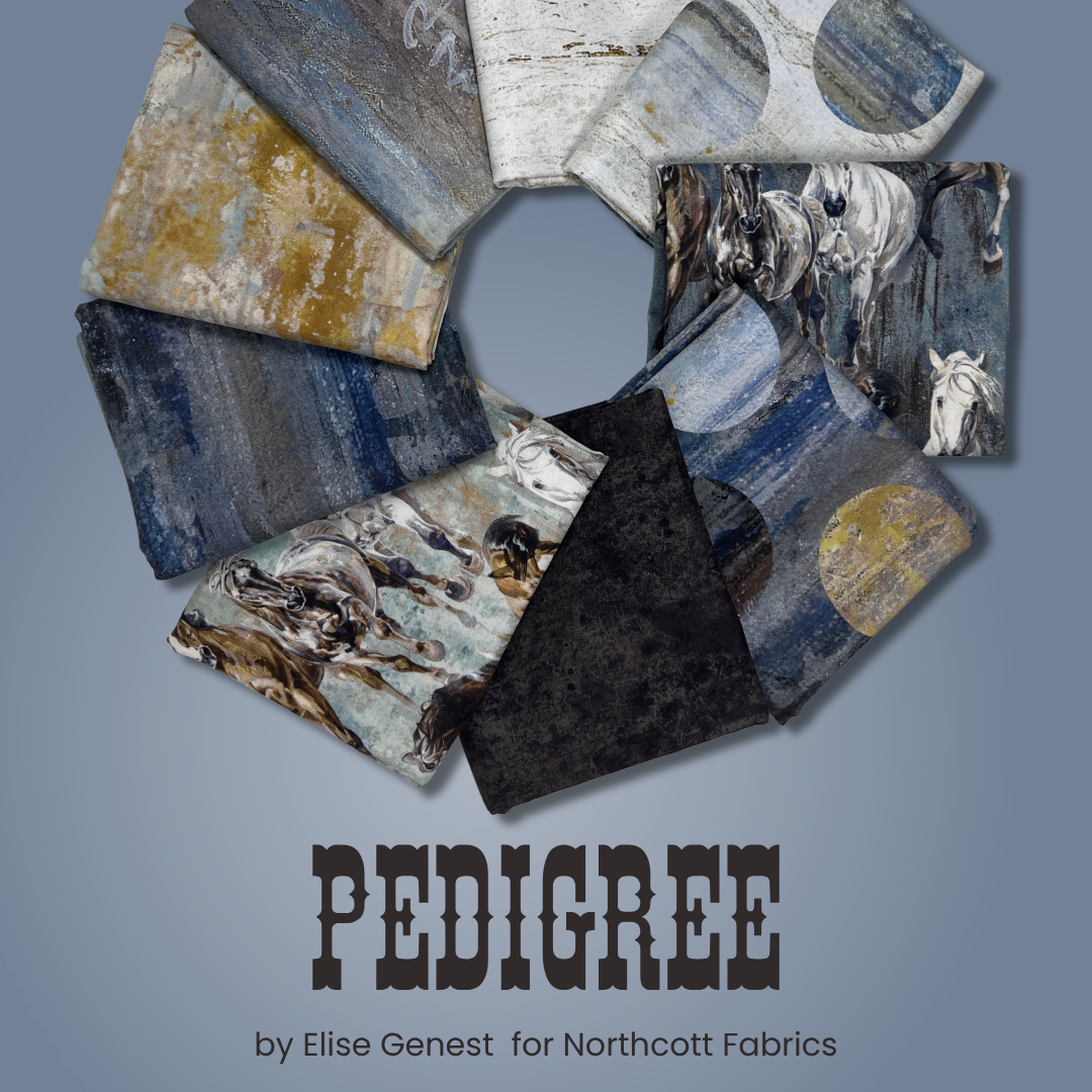 Step into the wild elegance of the equestrian world with the Pedigree collection by Elise Genest for Northcott Fabrics. This 9-piece half yard bundle captures the spirit, motion, and majesty of horses through a masterful blend of abstract textures, earthy tones, and dynamic imagery.