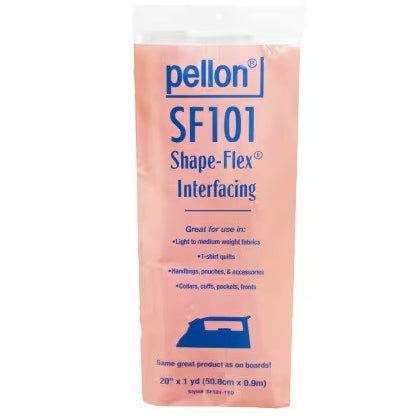 Pellon SF101 Shape-Flex is an all purpose, woven, fusible interfacing. It provides crisp support for collars, cuffs, yokes, pockets, facings, and other detail areas of a garment. It can also add body and permanent stability when used as a backing for needlework and punch embroidery. Shape-Flex® is intended for light to medium woven and knit fabrics, including oxford cloth, chambray, gingham, madras, tattersall, pincord, flannel, and polyester/cotton blends. To pre-shrink, fill a sink with warm water. Place interfacing in water for about ten minutes. Do not put in washer or dryer by itself or you may loosen the adhesive. Gentle squeeze out excess water and allow to dry.