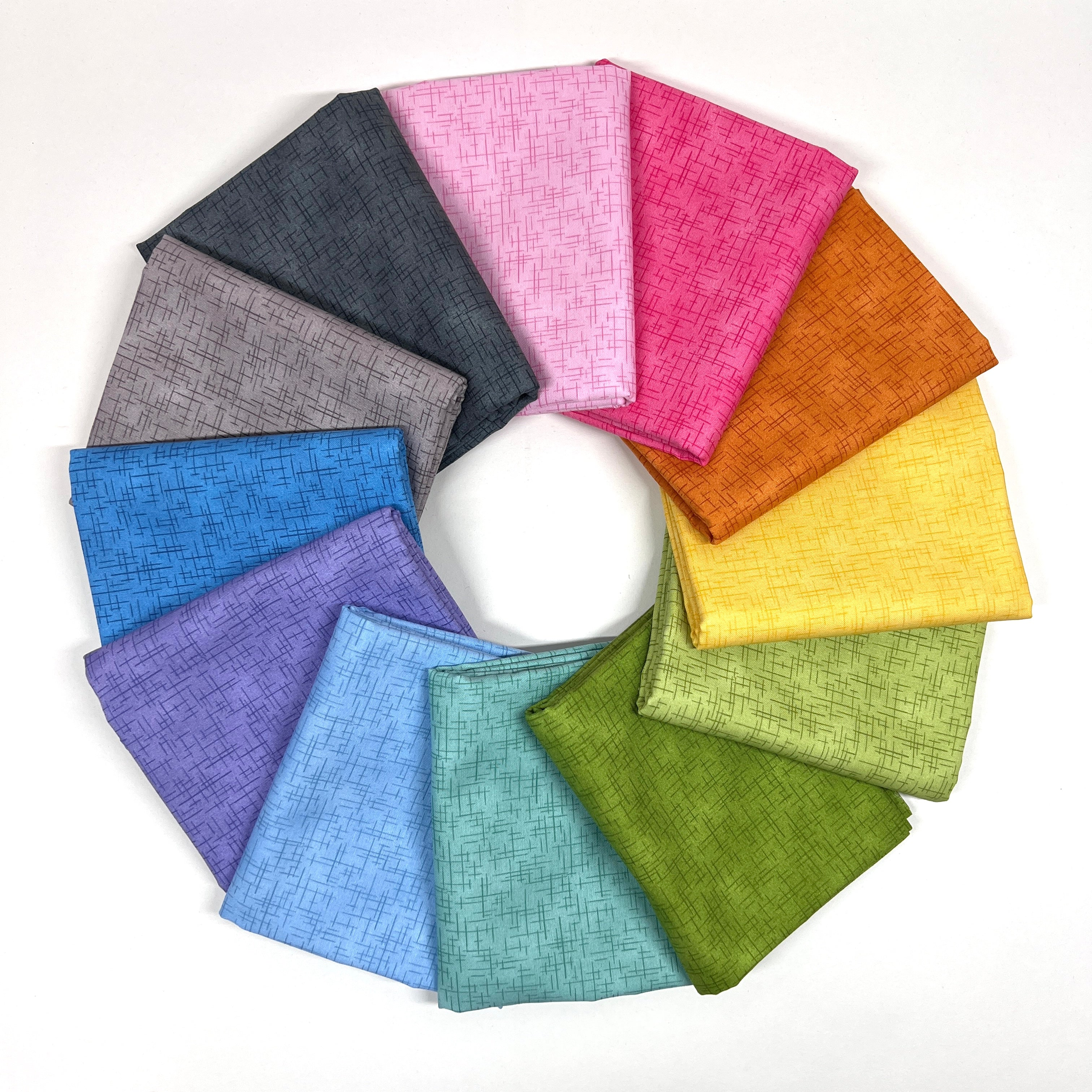 Brighten your next quilting project with the vibrant colors of the Retro Stitch Half Yard Bundle by Andover Fabrics. This cheerful bundle includes 12 half-yard cuts of Retro Stitch, a versatile blender fabric that features a subtle crosshatch texture inspired by vintage stitching.