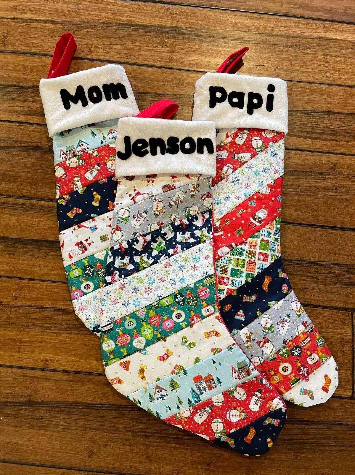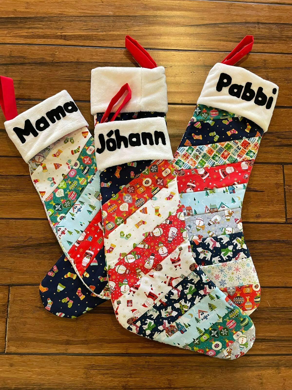 Sewing instructions can be found in the Scrappy Mini Stocking video, just adjust the sizes to the measurements in this pattern.