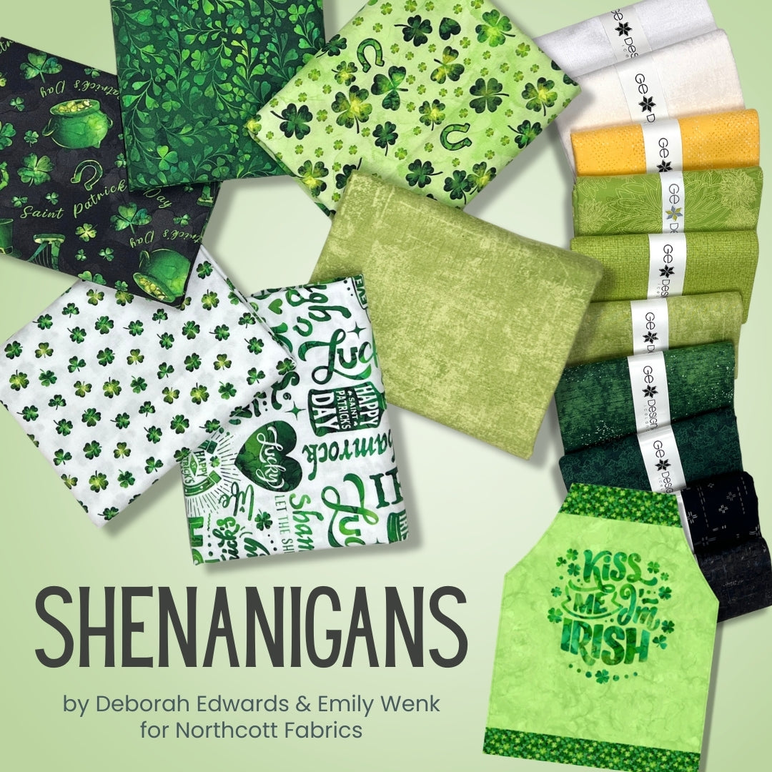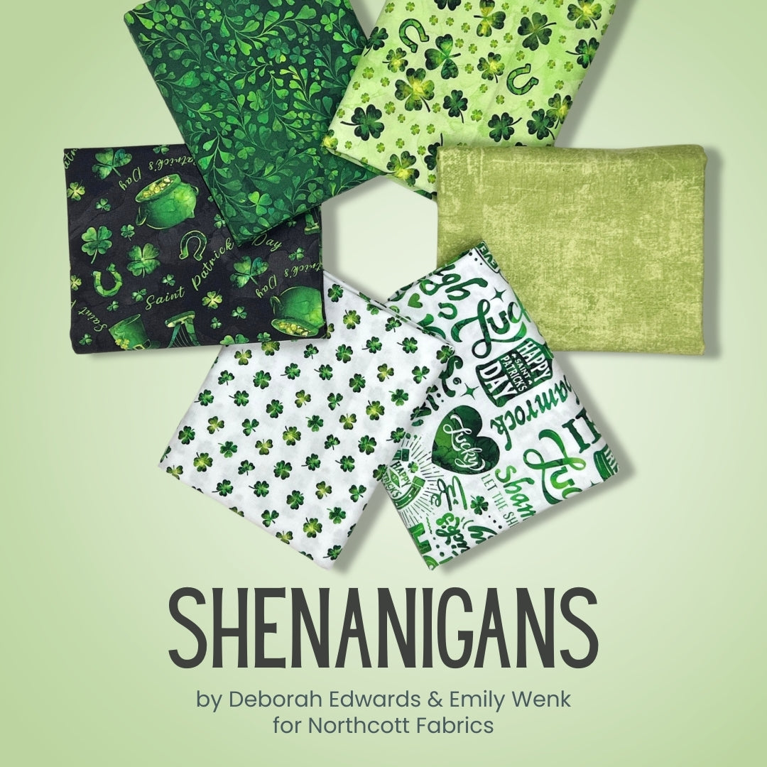 Add a little luck—and a lot of fun—to your next project with the Shenanigans collection by Deborah Edwards and Melanie Samra for Northcott Fabrics. This festive 6 piece half yard bundle features rich shades of green, playful shamrocks, and cheerful St. Patrick’s Day–inspired prints that feel both whimsical and versatile.