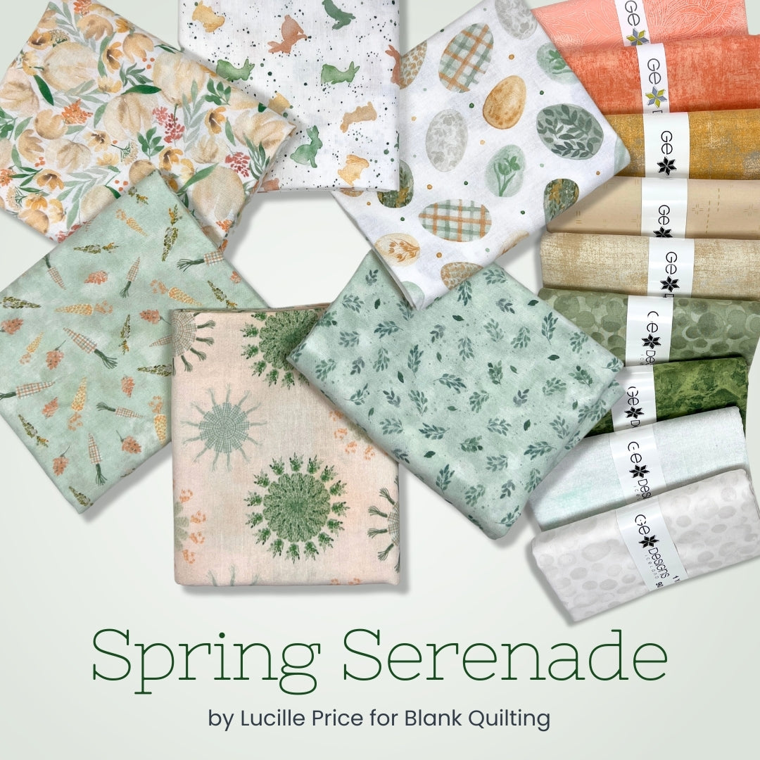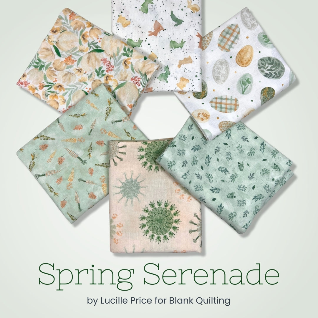Fresh, cheerful, and full of sweet spring energy, Spring Serenade by Lucille Price for Blank Quilting is a lovely mix of florals and coordinating prints in a bright, happy palette. This 6 piece half yard bundle is perfect for adding a light, uplifting feel to your quilts—think blooming gardens, sunny afternoons, and that first warm breeze after winter.