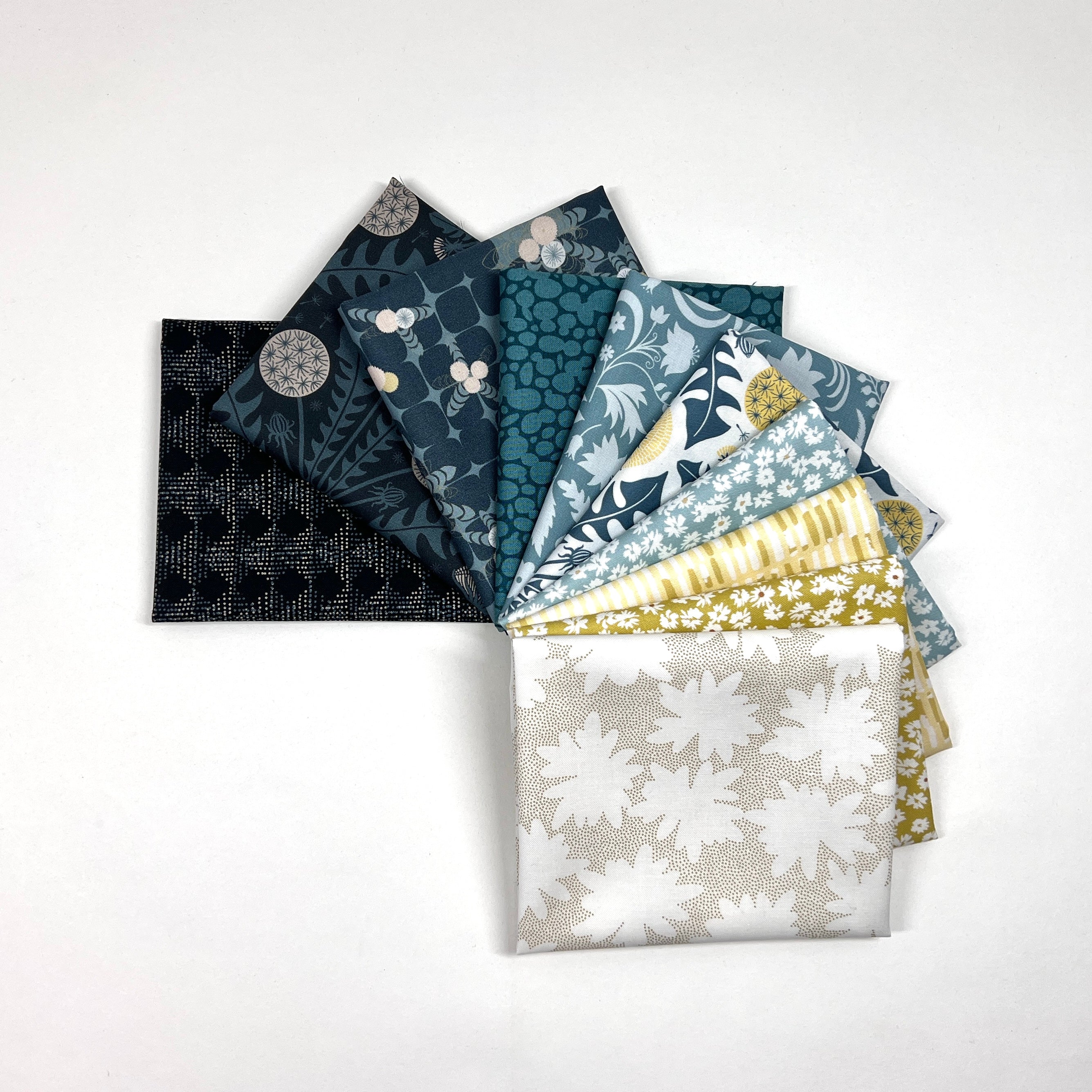 Soft, serene, and beautifully balanced, Tender by Pippa Shaw for Figo Fabrics is a timeless collection inspired by quiet moments and organic beauty. This 10 piece fat quarter bundle features a soothing palette of teal, blue-grey, soft white, navy, and warm golden accents, paired with delicate florals, textured geometrics, and graceful botanical motifs.