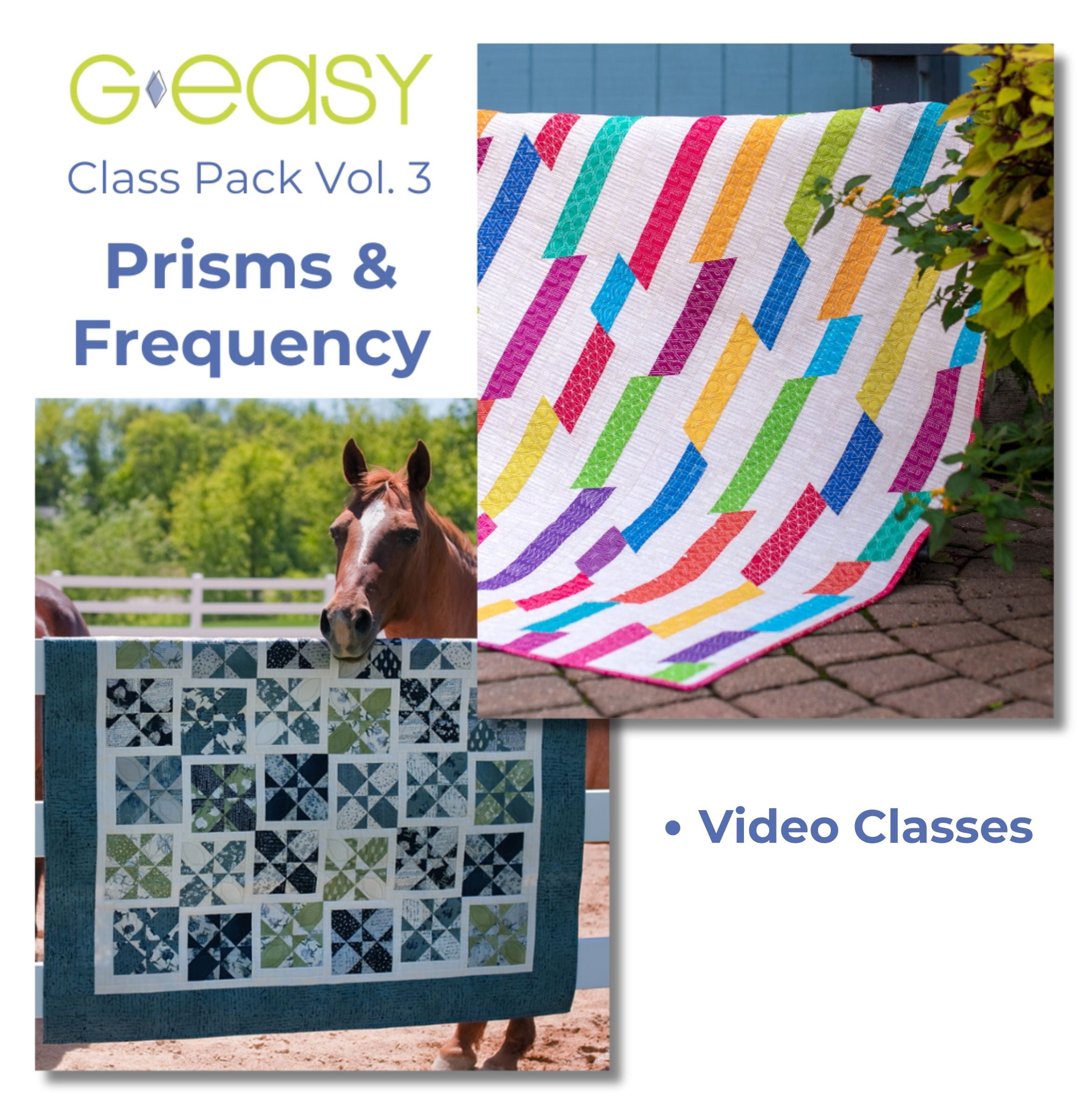 Experience the joy of learning with Gudrun right from your own home with the GEasy Class Pack Vol. 3! This pack includes six comprehensive video sessions guiding you through the creation of two stunning quilts: Prisms and Frequency. You’ll receive lifetime access to all video classes, so you can watch, pause, and revisit them whenever you need. In addition, this Class Pack comes with downloadable PDF patterns for both quilts, ensuring you have all the instructions at your fingertips.