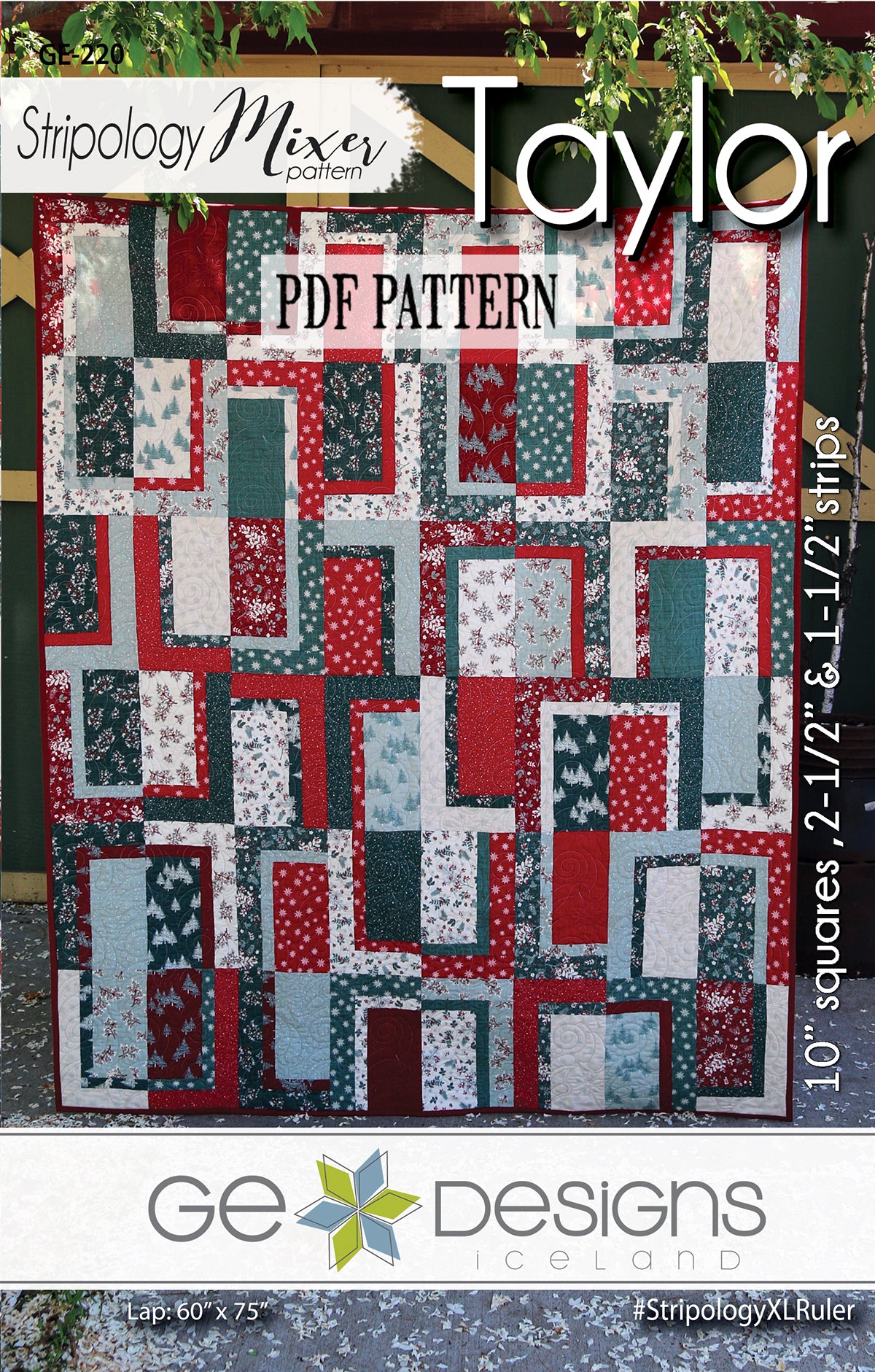 Taylor is a really fun and easy pattern that you can tailor to your own taste. It uses 10" squares, 1-1/2" and 2-1/2" strips or you can use fat quarters. Cutting goes even faster with the Stripology XL ruler by GE Designs. Instructions are included for using regular rulers. The pattern comes with 5 different size options: crib, lap, full, queen, king.